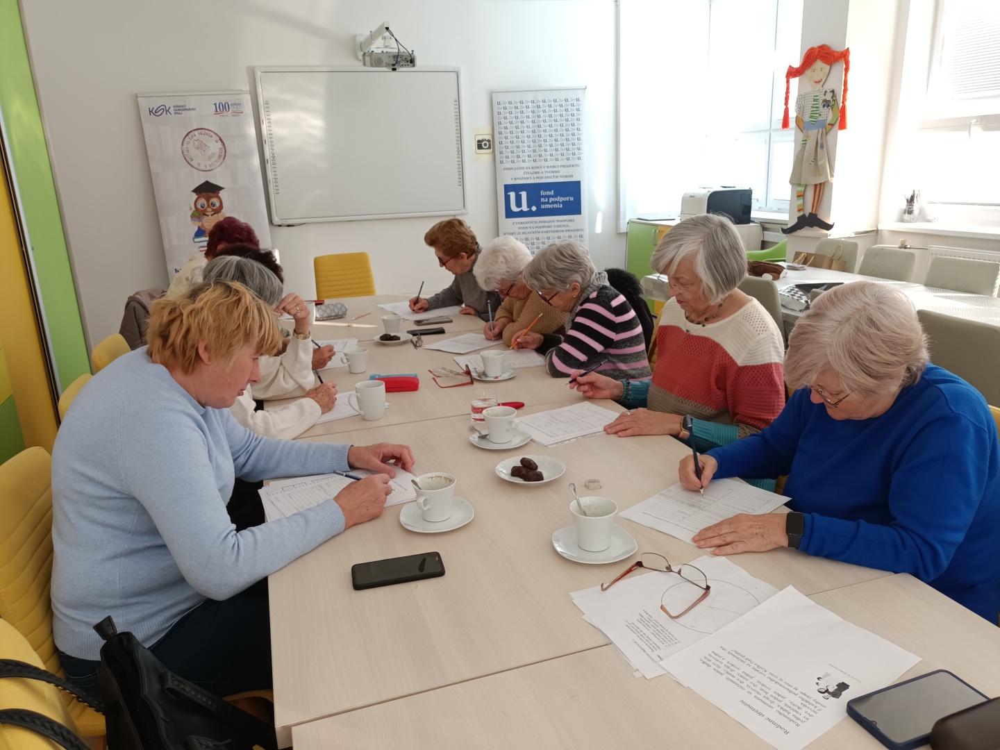 Aktivity pre seniorov nie sú len formou zábavy, ale aj prostriedkom na posilnenie zdravia, vyvolania radostných pocitov a udržania intelektu. Pasivita a nuda môžu mať negatívny vplyv na zdravie, naopak aktívne a zmysluplné trávenie voľného času prináša mnoho výhod. Preto vytváranie aktivít pre staršiu generáciu nie je len prospešné, ale aj nevyhnutné. A preto aj na toto stretnutie sme pripravili ďalšie zaujímavé aktivity, ktoré boli zamerané na tvorenie a jemnú motoriku. Pracovalo sa nielen individuálne, ale aj v skupinách.
