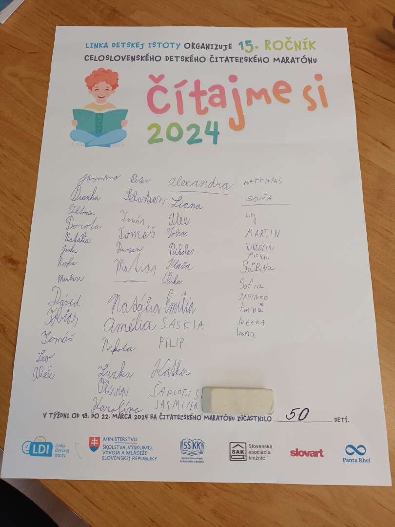 Na podporu rozvoja čitateľskej gramotnosti knižnica organizuje rôzne aktivity, ako sú napríklad hodiny hlasného čítania, čitateľské dielne alebo čitateľské maratóny. A preto aj na 7.ZŠ sme pripravili pre žiakov už ôsmi ročník školského čitateľského maratónu pod názvom Z rozprávky do rozprávky - Gabriela Futová.