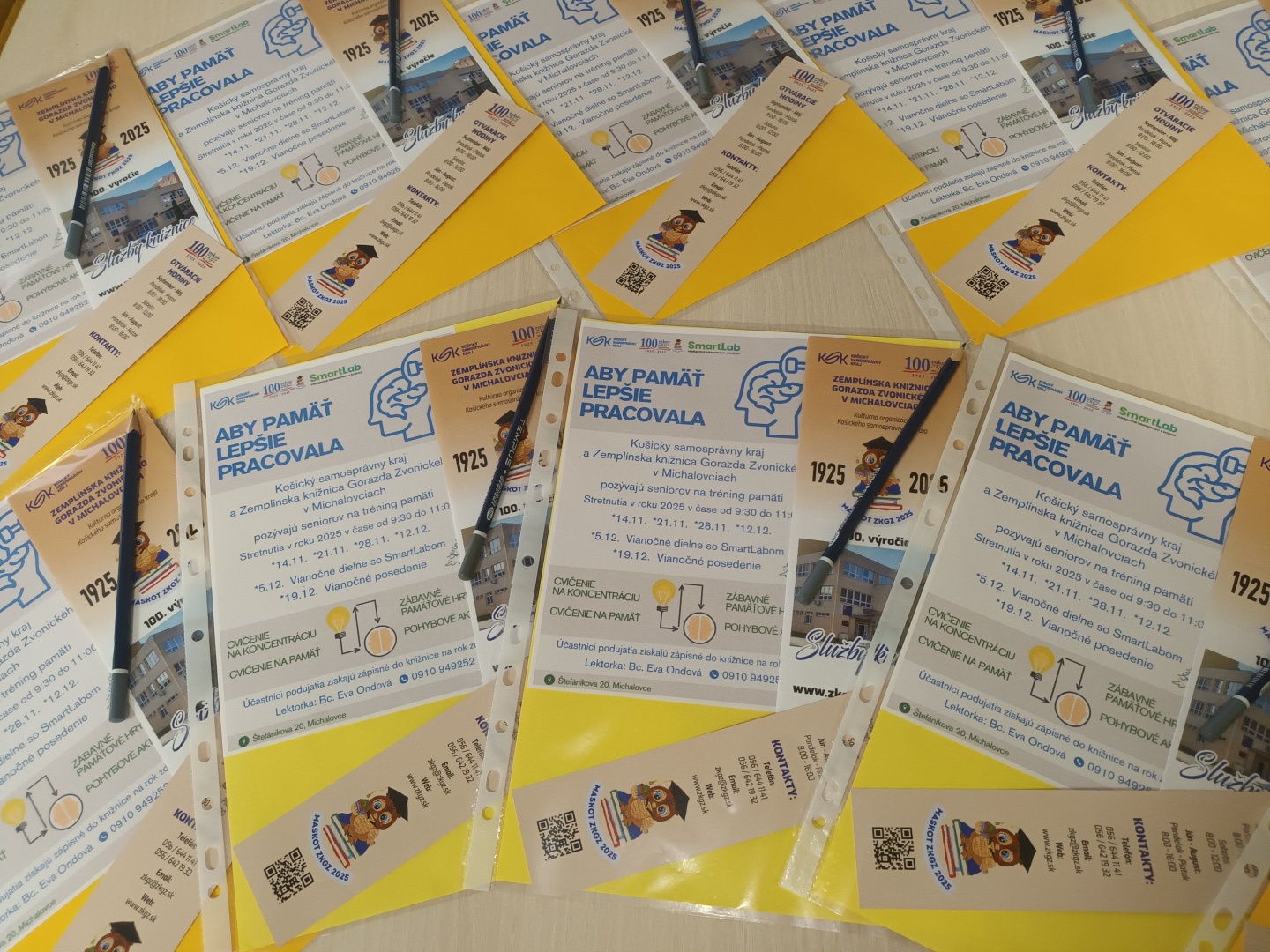 Zemplínska knižnica Gorazda Zvonického v Michalovciach pripravuje rôzne aktivity, zamerané aj na seniorov, medzi ktoré patrí aj tréning pamäti. V rámci prístupu trénovania pamäti sme aplikovali konkrétne techniky, ktoré sú zamerané na jednotlivé oblasti rozvoja a udržiavania kognitívnych schopností mozgu. Ide o cvičenia zamerané na krátkodobú pamäť, dlhodobú pamäť, koncentráciu, na stimuláciu mozgových hemisfér, tvorivosť či fantáziu. Pracovalo sa nielen individuálne, ale aj v skupinách.