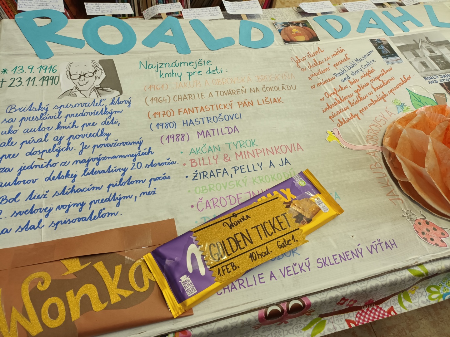 Na I.ZŠ odštartoval už desiaty ročník čitateľského projektu pod názvom „Roald Dahl a jeho autorská dielňa“ pre žiakov 5. ročníka. Cieľom tohto čitateľského projektu je spojiť školské vyučovanie s mimoškolskou čitateľskou aktivitou a pripraviť pre našich čitateľov „netradičnú hodinu“, ktorá by ich podnietila k ďalšej literárnej práci a čítaniu. Chceme tu uplatniť a priviesť žiaka k samostatnému výberu diela. Pri tomto konkrétnom čitateľskom projekte chceme poskytnúť žiakom ucelený obraz o tomto autorovi, jeho živote a autorskej dielni. Žiaci po prečítaní diela majú možnosť hodnotiť knihy cez tri alternatívy: páči sa mi, môže byť alebo nie, ďakujem. Dôležitá je podpora žiaka pri jeho hodnotení konkrétneho diela, čo zahŕňa prípadne aj kritický postoj k niektorému z diel. Tento projekt bude prebiehať do konca mája, kedy bude jeho vyhodnotenie a výber NAJ knihy a NAJ čitateľa. V knižnici na tejto školskej pobočke sú žiakom k dispozícii všetky knihy určené detskému čitateľovi od Roalda Dahla preložené do slovenského jazyka. Súčasťou aktivít bola aj informačná príprava. Podujatia sa zúčastnili žiaci s pani učiteľkou Mgr. Tongeľovou.