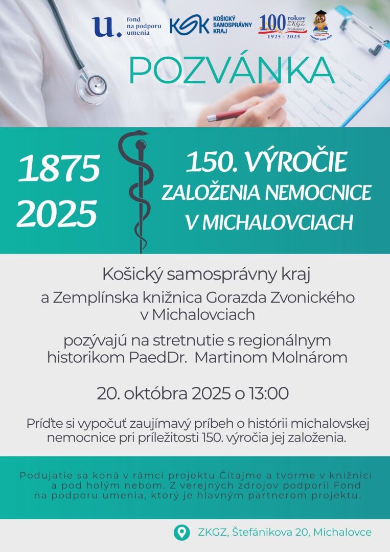 Dňa 20.10.2025 sa v našej knižnici uskutočnila prednáška spojená s besedou s historikom Zemplínskeho múzea v Michalovciach PhDr. Martinom Molnárom na tému 150.výročie založenia nemocnice v Michalovciach. Dozvedeli sme sa, že zriaďovacia listina bola z roku 1875 a do prevádzky sa nemocnica dostala 01.12.1876.