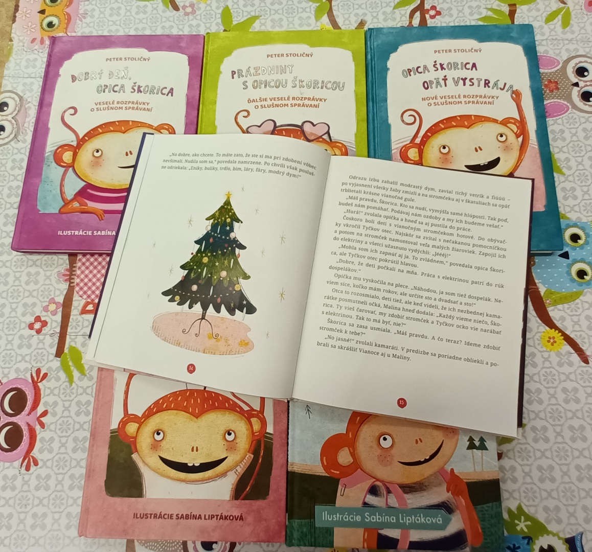 Poznáte opicu Škoricu? No pravdaže! Je to tá rozprávková opička, ktorá sa svojim kamarátom Jurkovi, Paľkovi a Emke v predchádzajúcich knižkách postarala o nejedno dobrodružstvo. Naša malá opička nezbednica totiž dokáže čarovať. A veru nie vždy sa jej to čarovanie podarí. Nikdy s ňou ale nie je nuda. Opica Škorica nás nesklamala ani v tejto vianočnej knižke. Spolu s opicou Škoricou sme si vyzdobili náš vianočný stromček v školskom klube a prečítali prvý príbeh z tejto knižky. Nechýbali ani vianočné hry, koledy, veršovačky a malá predvianočná sladkosť za krásne vyzdobený stromček. Spoločne sa už teraz tešíme na novú knižku s našou opičkou.