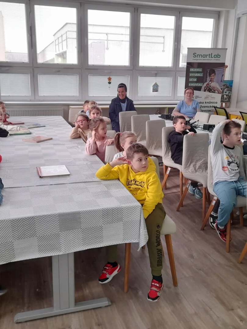 Dňa 14. 04. 2026 prvýkrát navštívili ZKGZ v Michalovciach deti Materskej školy sv. Terezky v Michalovciach. Oboznámili sa s knihou, procesom jej vzniku a rozdelením kníh v knižnici. Dozvedeli sa, kto knihu píše a kto ju ilustruje. Zistili, kam putuje kniha po vytlačení z tlačiarne, kde si ju môžeme kúpiť a kde si ju môžeme požičať. Naučili sa, ako správne zaobchádzať s knihou a ako získať čitateľský preukaz. Na záver podujatia si deti zahrali pexeso na interaktívnej tabuli, ktoré ich veľmi zaujalo. Deti sa do hry zapájali s nadšením, aktívne spolupracovali a prejavili radosť z objavovania správnych dvojíc.