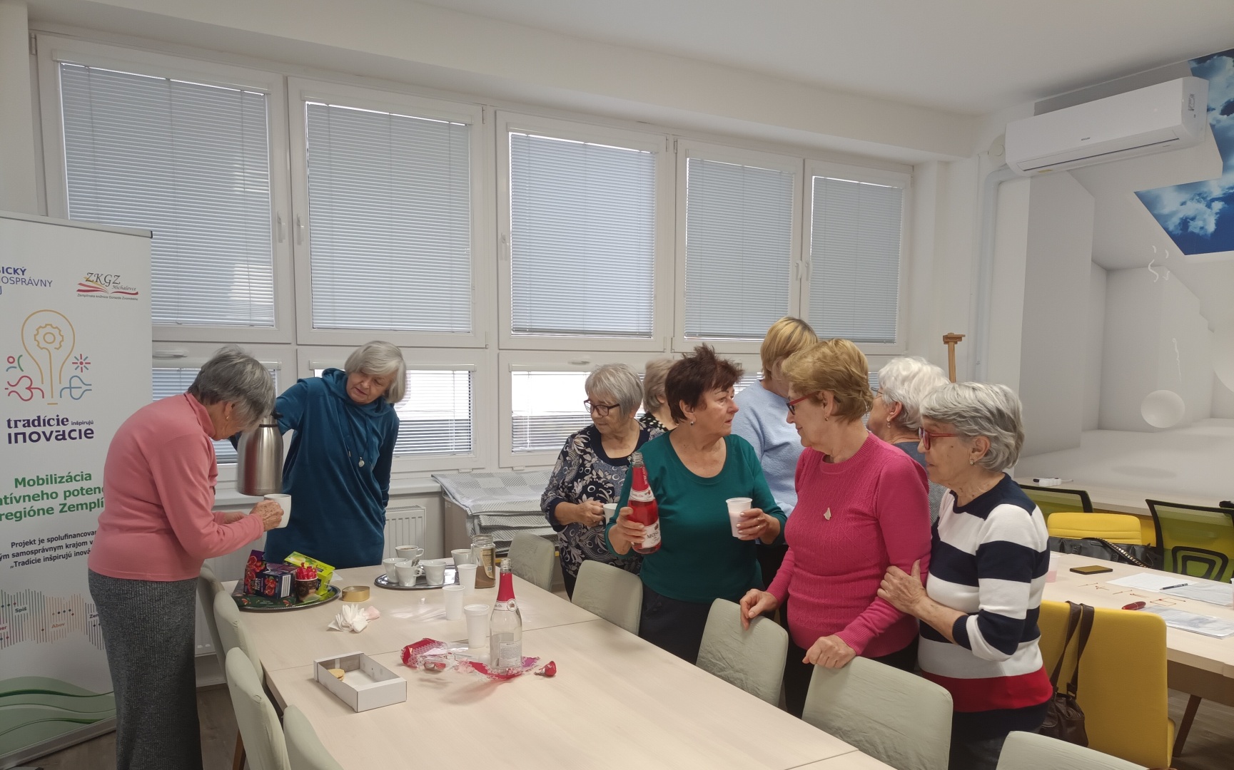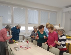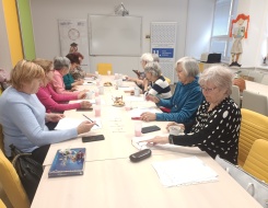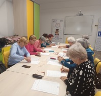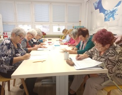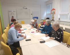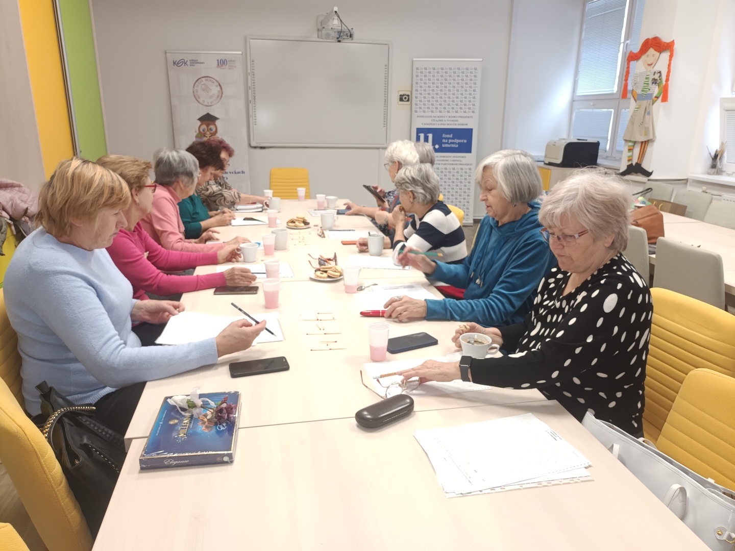 Tak, ako nám ochabne svalstvo, rovnako je to s našou pamäťou. Treba ju trénovať - obzvlášť, keď roky pribúdajú. Poznávacie funkcie - pamäť, myslenie, reč sú pri demencii ohrozené. Musíme ich preto udržiavať ustavične aktívne. Môžeme tak urobiť tým, že sa začneme učiť nový cudzí jazyk, naučíme sa lúštiť sudoku alebo novú báseň. Toto všetko sú aktivity, ktoré sú pre seniorov mentálne stimulujúce. Na našom predchádzajúcom stretnutí sme sa zamerali aj na jemnú motoriku pri tvorivých dielňach. Toto stretnutie bolo zamerané na koncentračné a tvorivé úlohy, nechýbala ani spoločná úloha - rébus. Hry v dvojiciach, ktoré upevňujú spoločenský kontakt a boli pekným spestrením stretnutia.