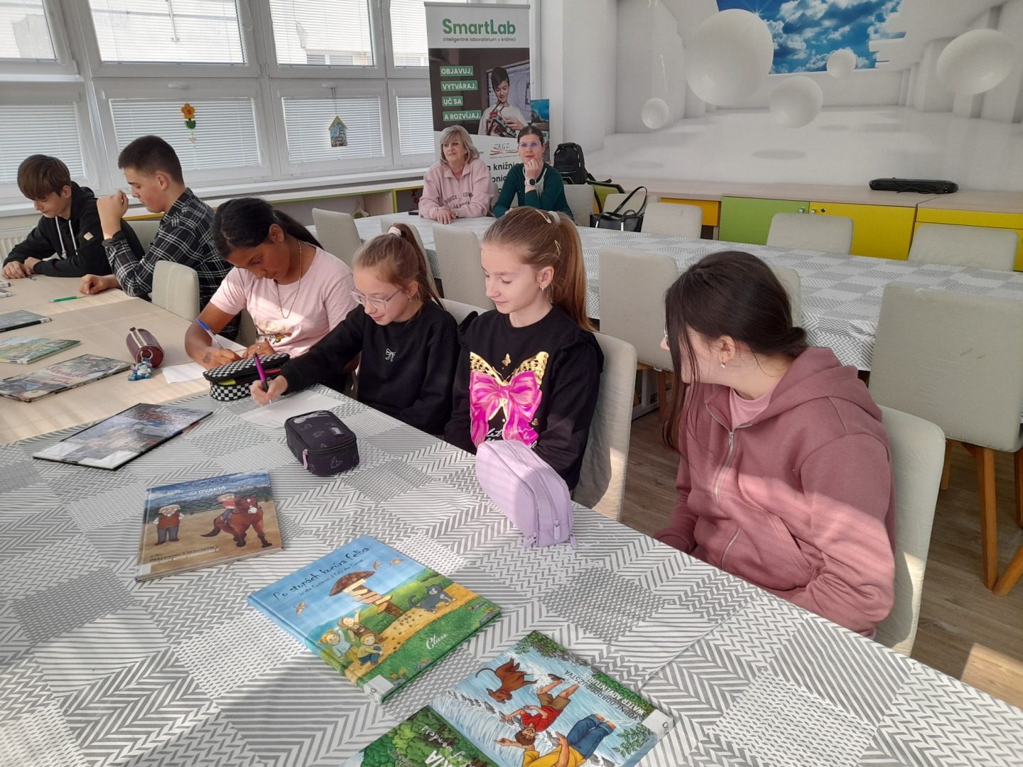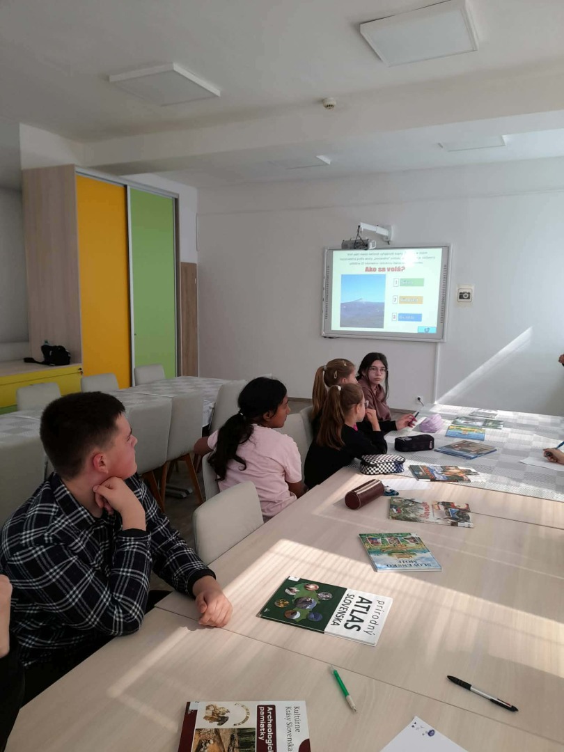 V priestoroch knižnice sme pre žiakov usporiadali vedomostný kvíz o Slovensku. Žiaci mali príležitosť rozšíriť a zopakovať svoje vedomosti o slovenských hradoch, mestách, pohoriach, vodných tokoch a ďalších zaujímavostiach. K dispozícii mali aj knihy o Slovensku, ktoré im pomáhali nájsť správne odpovede na otázky. Žiaci pracovali samostatne a vyplňovali kvízové otázky. Cieľom bolo podporiť rozvoj čitateľskej gramotnosti prostredníctvom čítania s porozumením. Formou vedomostného kvízu sme zároveň rozvíjali komunikačné a kognitívne schopnosti žiakov, podporovali ich spoluprácu a motiváciu k učeniu, a to prostredníctvom práce s interaktívnou tabuľou a knihami.