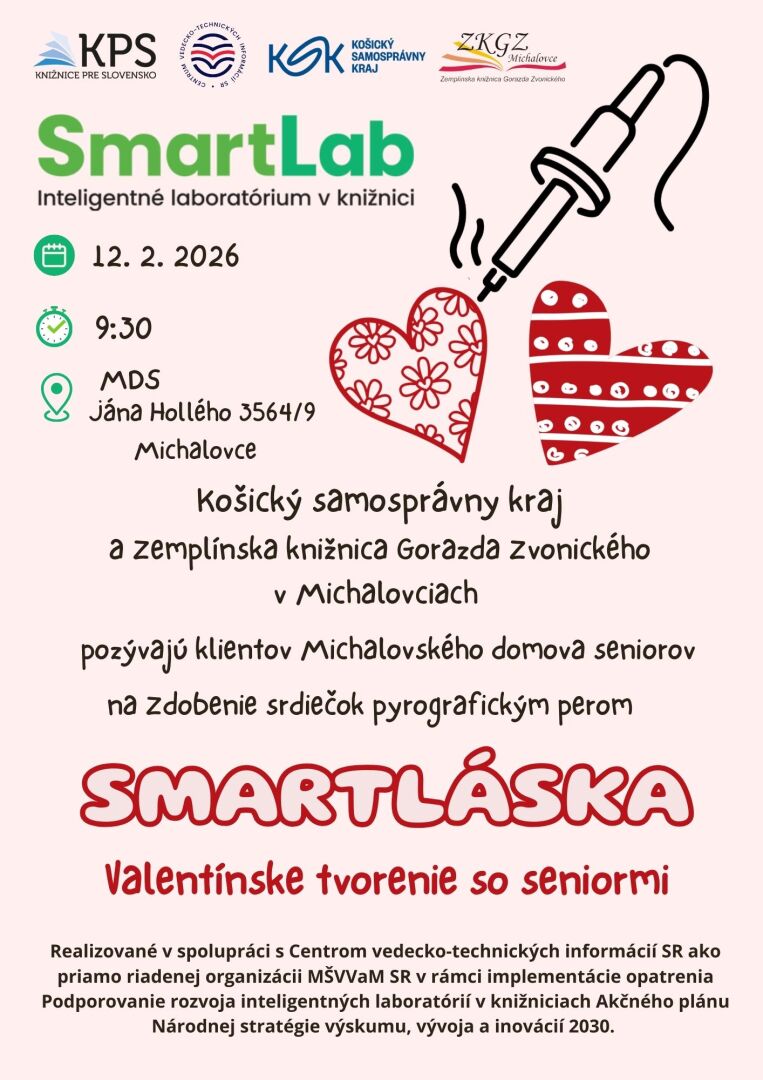 V rámci podujatia Košického samosprávneho kraja Spájame lásku a umenie a Valentínskeho týždňa v michalovskej knižnici sme dňa 12. februára 2026 navštívili seniorov v priestoroch Domova seniorov v Michalovciach, kde sa uskutočnilo tvorivé stretnutie s názvom SmartLáska – valentínske tvorenie so seniormi.