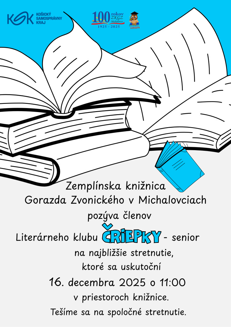 Dňa 16.12.2025 sa v Zemplínskej knižnici Gorazda Zvonického v Michalovciach uskutočnilo stretnutie členov LK Čriepky - senior. Stretnutia sa zúčastnilo 9 členov. Každý zo zúčastnených prečítal príspevky zo svojej najnovšej tvorby.